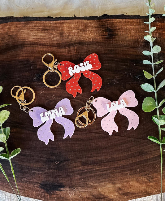Custom Acrylic Name Coquette Bow Keychain Tag | Personalized Name Bag Tag | Backpack Tag | Baby Diaper Bag | Luggage Tag | Tag for Girls