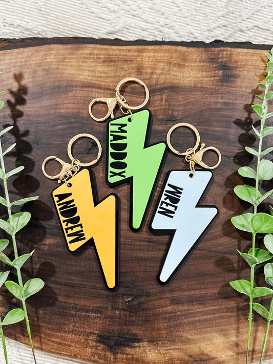 Lightning Bolt Backpack Name Tag Keychain | Acrylic Bag Tag | Retro Name Tag | Diaper Bag Tag | Acrylic Bag Keychain | Kids Keychain Bag Tag