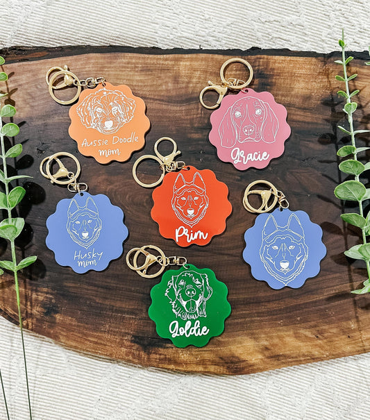 Custom Dog Mom Keychain | Personalized Acrylic Dog Portrait Name Tag | Backpack Tag | Bag Tag | Pet Keychain | Dog Keychain | Dog Mom Gift