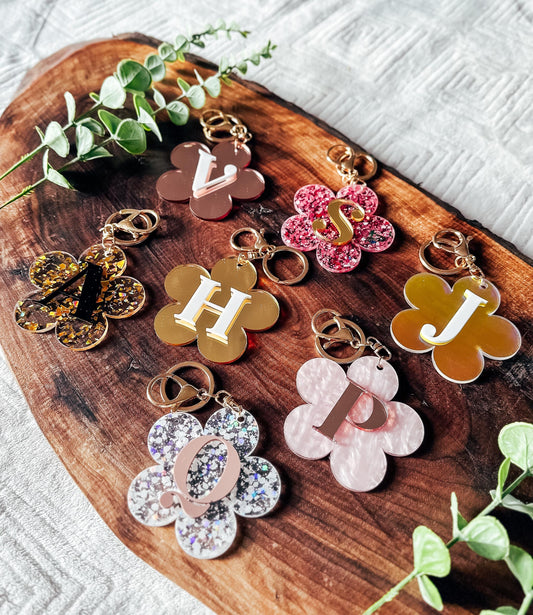 3D Custom Name Flower Keychain | Personalized Acrylic Initial Name Tag | Backpack tag | Bag Tag | Boho Monogram Retro Daisy Tag