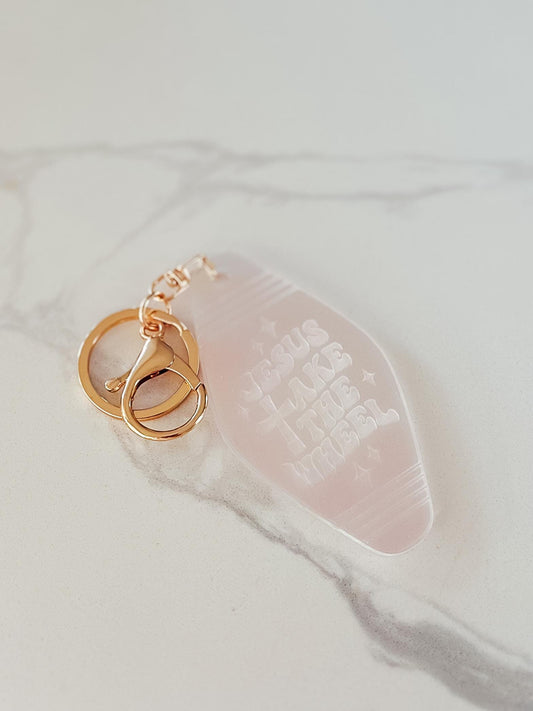 Jesus Take The Wheel Keychain | Iridescent Blue Acrylic Motel Keychain | Backpack Tag | Bag Tag | Boho Retro Keychain Tag | Funny Keychain