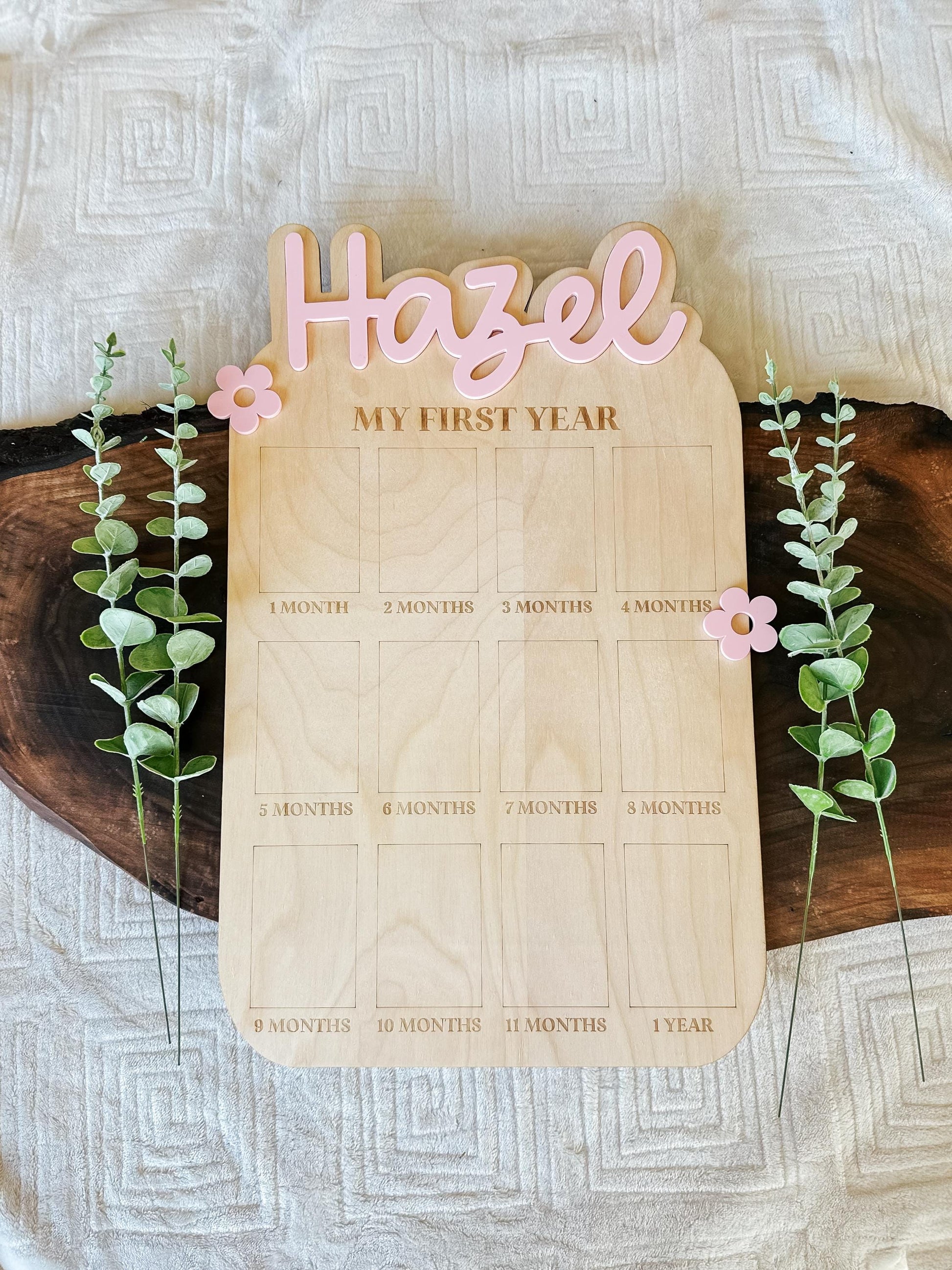 Personalized My First Year Photo Sign | First Birthday Milestone Board | Birthday Decor | One Year Milestone Board | Custom Name Photo Frame